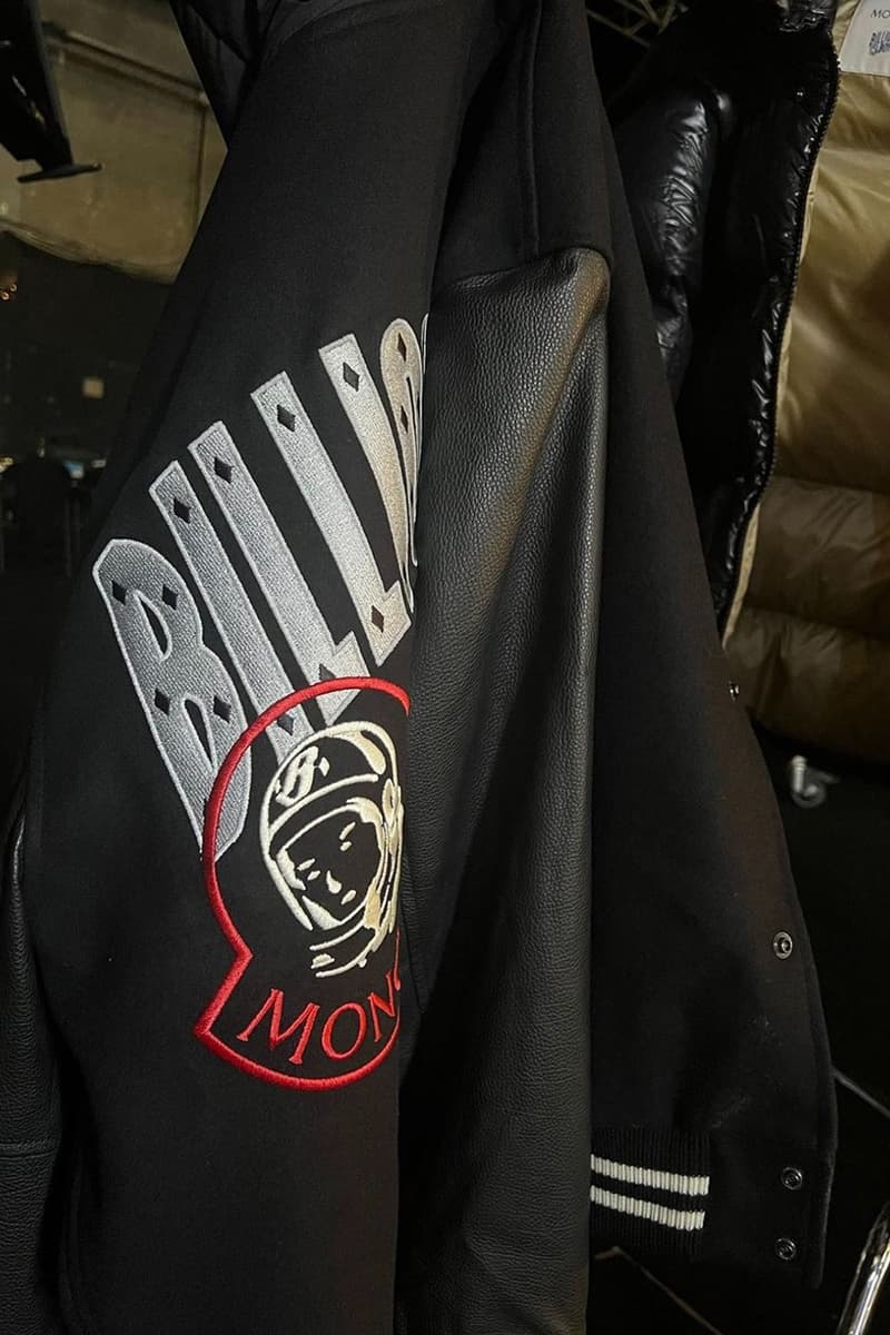 이미지 속 포착된 제품군은 그래픽 티셔츠, 바시티 타입 레더 후디 재킷이다. 몽클레르의 로고 레이아웃 내부에 자리 잡은 빌리네어 보이즈 클럽 로고가 특징이다.